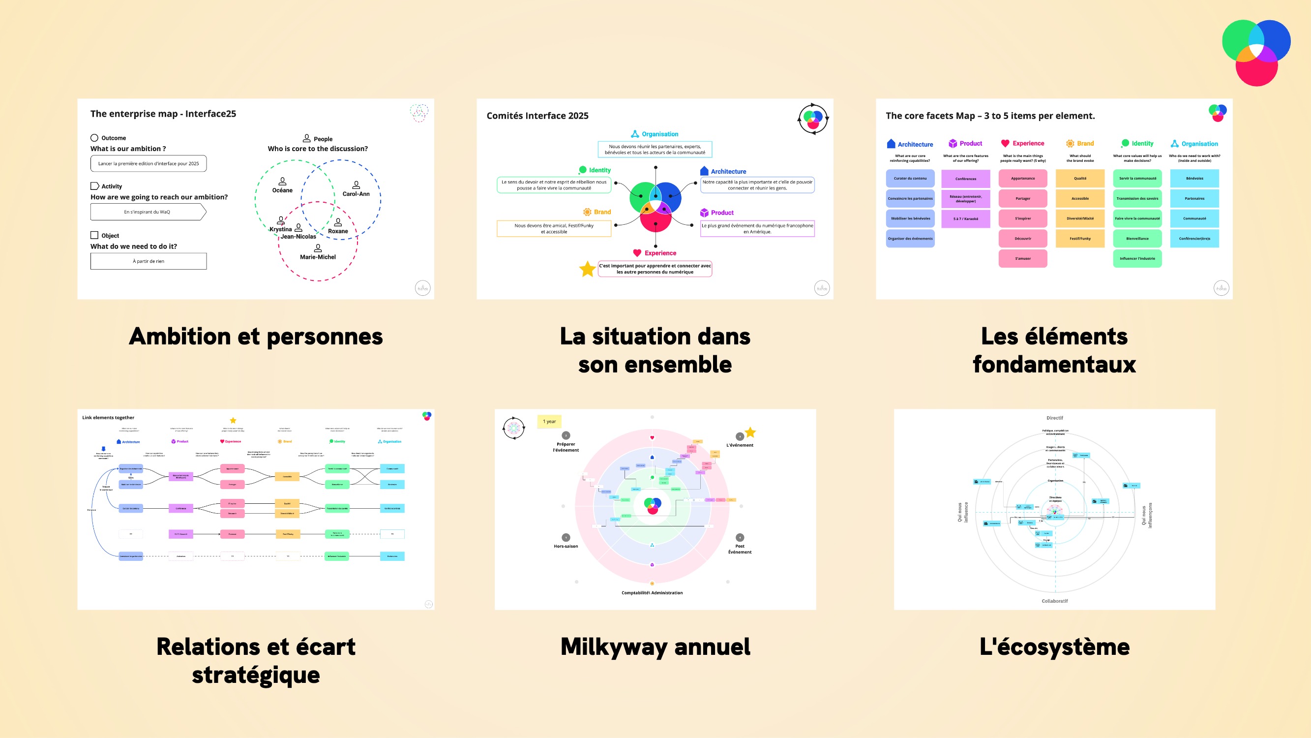 Évidemment, une vision ne suffit pas pour faire évoluer une organisation — et cette évolution doit être constante. C’est pourquoi, en arrière-plan, les résultats des divers sondages de satisfaction ont été compilés pour identifier les besoins des gens (visiteurs, bénévoles, conférenciers, etc.). Les parties prenantes de l’écosystème de Québec ont été cartographiées afin d’avoir une idée de qui peut contribuer à l’aventure, et sous quelle forme. Un portfolio de services a aussi été dressé pour avoir une meilleure visibilité sur tous les petits détails qui composent un événement, et plus encore.