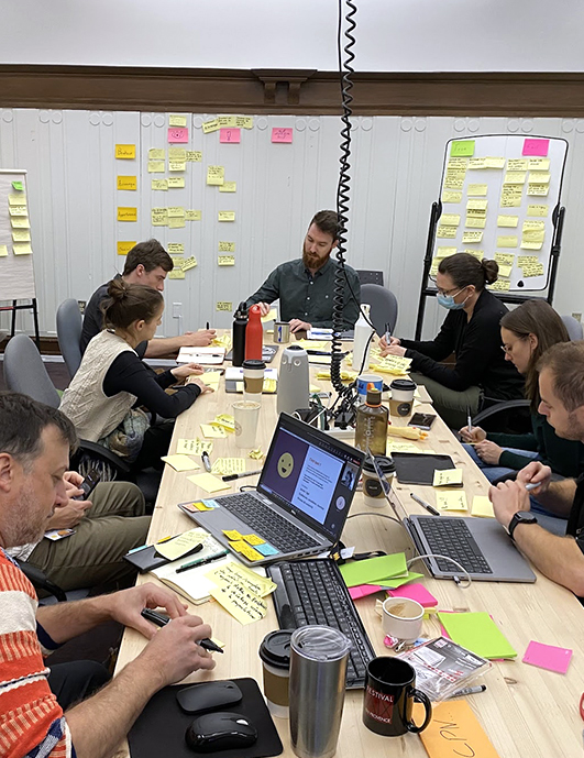 Bon, après avoir copié/coller ma bio LinkedIn, j’ai lu celle d’Éric… J’ai tout réécrit. Donc, je suis le jack of all trades de l’équipe. Ben oui, je fais de la facilitation, de l’image de marque, du UX, du Ui, du quick prototyping, de la recherche utilisateur, de la photographie, de l’illustration, du montage vidéo, de l'escalade, du vélo et j’en passe. J’ai aussi gossé le HTML et le CSS pour ce site web. J’ai toujours cette envie de décortiquer tout ce que je fais pour comprendre comment ça fonctionne. C’est pratique comme obsession, surtout quand vient le temps de vous aider
