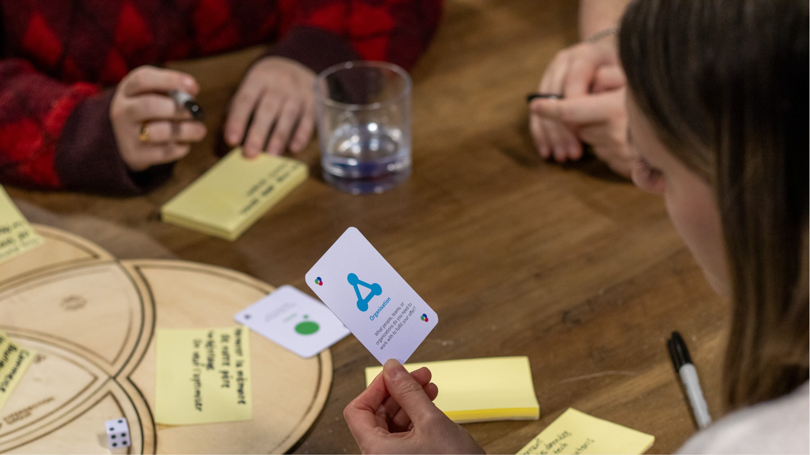 À l’époque, on était en mode création d’un jeu de société pour aider les équipes à avancer dans leurs projets et dans ce qu’elles entreprennent. On a donc joué à ce qui s’appelle aujourd’hui La Partie Prenante — un jeu où l’on apprend en créant une fausse compagnie de bas de laine utilisant le big data comme différenciateur.